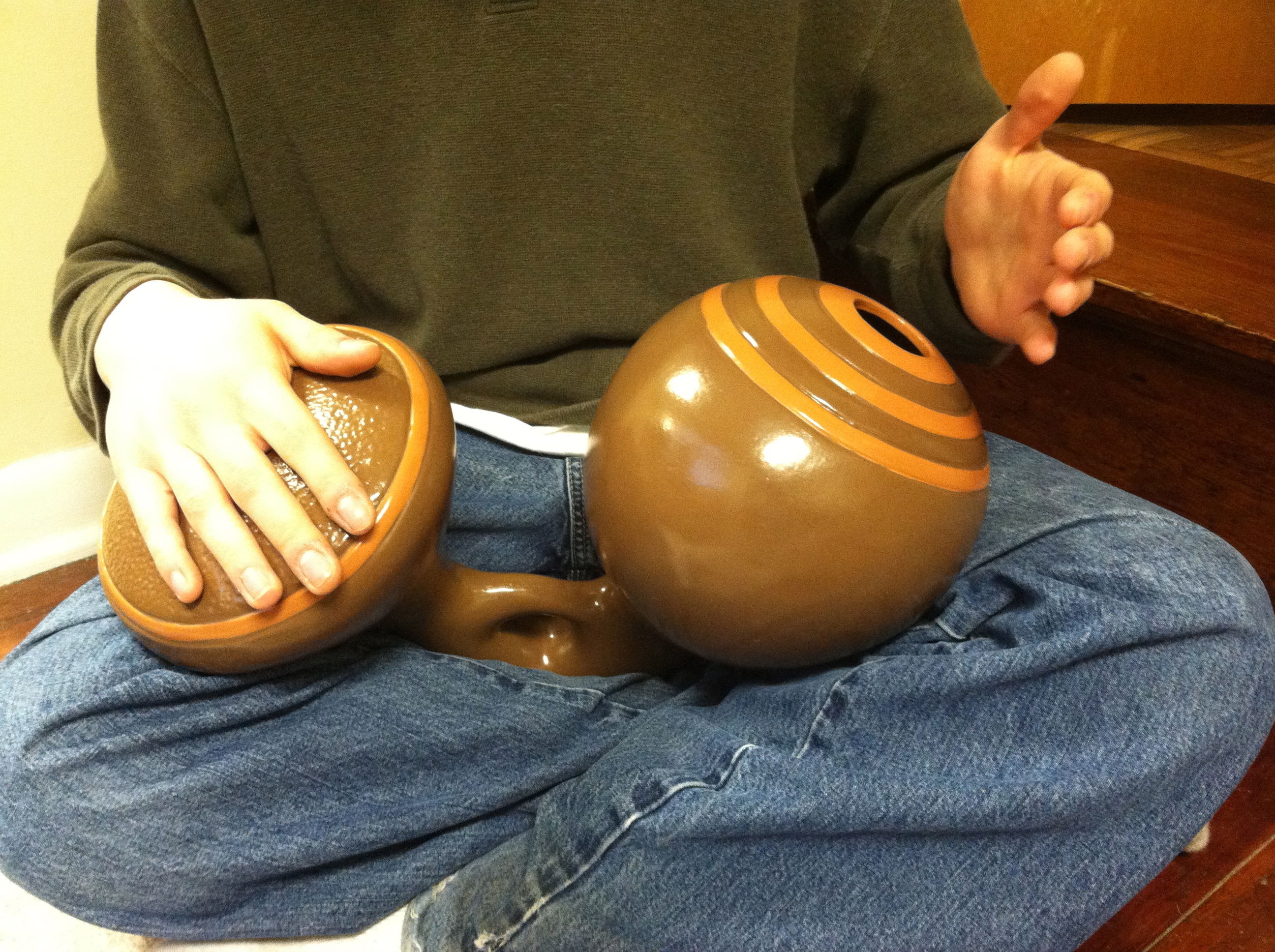 A clear example of this is in a piece I did called “Ceramics” from The Gathering Mist’s album, “Reservoir” (notated above – follow along!), which starts off with a jembe playing a syncopated rhythm in 11/8, panned to one side. After four bars a dumbek enters, panned to the other side, playing a complementary rhythm to the jembe, still in 11/8. Four bars later at measure 9, the jembe and dumbek switch parts but the same principle still applies. Once the dumbek enters on the first beat of measure 5, the rest of that beginning section to the piece sounds like straight 16th notes because of this rhythmic complementing process. Enjoy!
